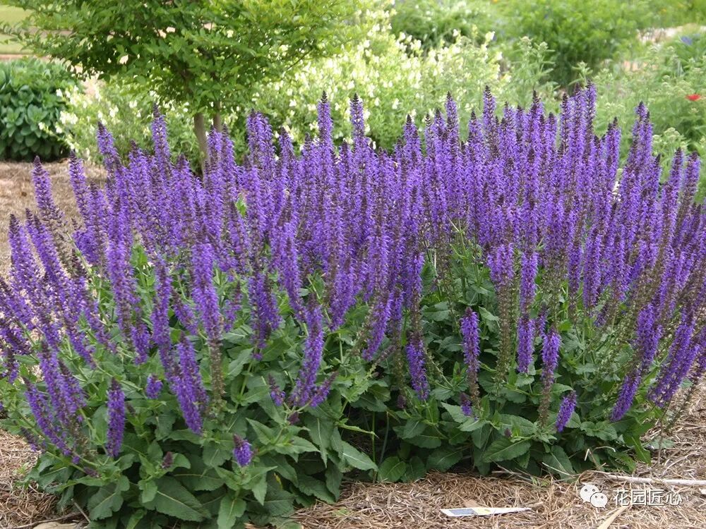 宿根鼠尾草,花期5-7月,是可以当年开花的多年生品种,兼具鼠尾草的耐热性与其特有的耐寒性,可忍受零下34℃的低温,在多种气候条件下都能茂盛生长。