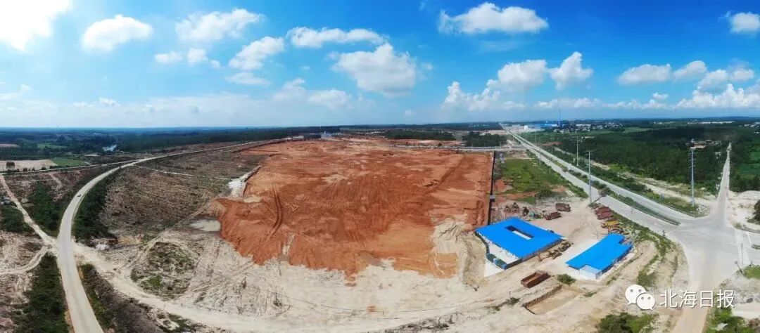 正在开展项目土地清表平整的铁山东港德金新材料产业园项目现场。李君光 摄