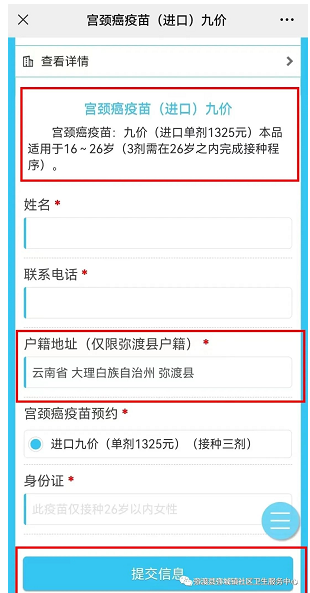 大理弥渡县弥城镇社区卫生服务中心HPV宫颈癌疫苗预约指南