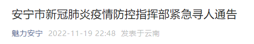 鉴于当前疫情形势严峻复杂和流调溯源需要,现紧急寻人通告如下: