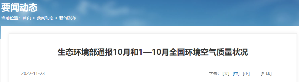 生态环境部通报10月和1—10月全国环境空气质量状况