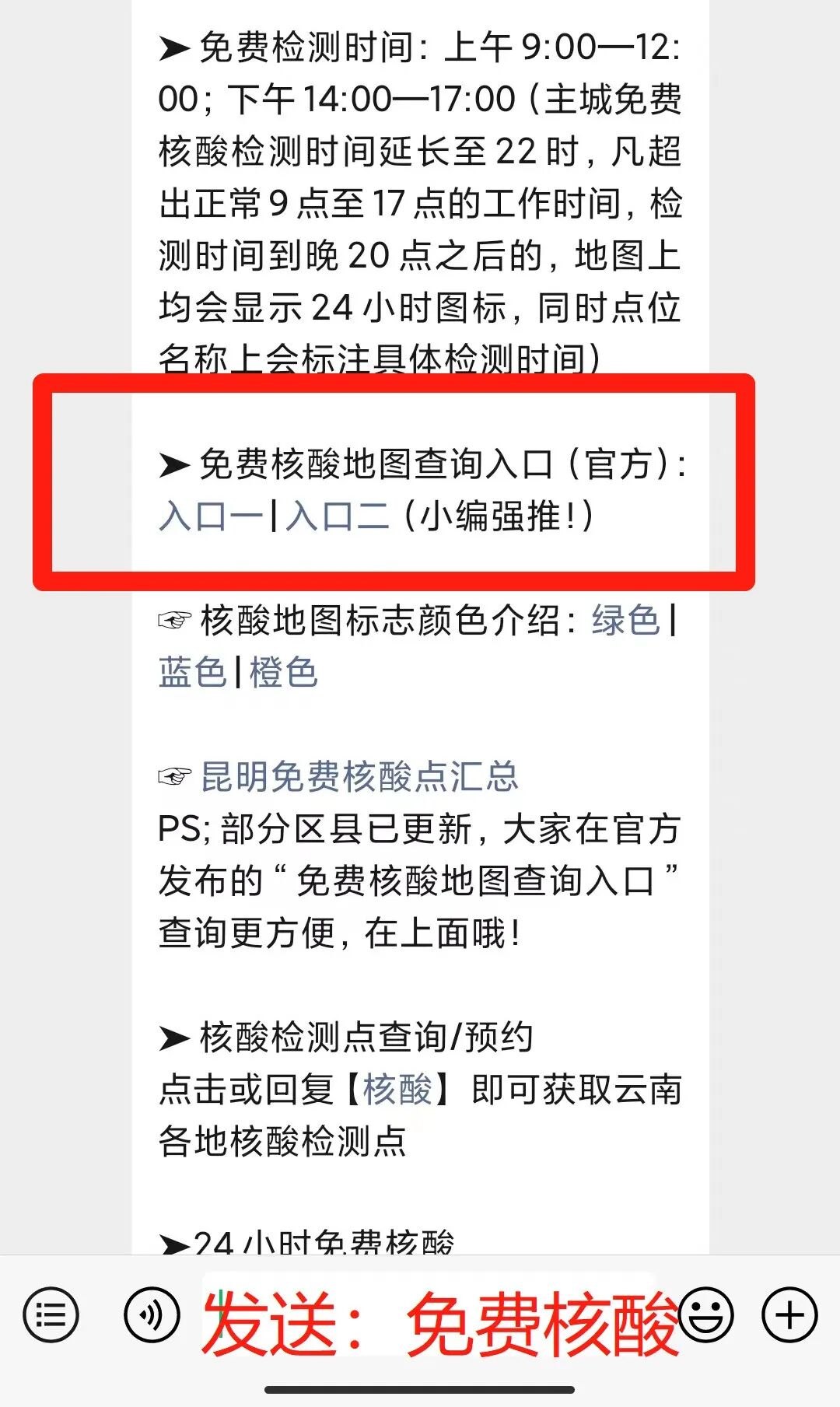 点击↑蓝字,输入“免费核酸”即可获取查询入口