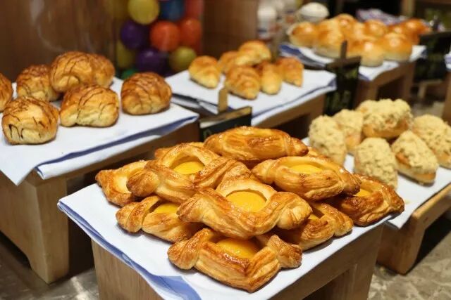 早餐有接地气的鸡蛋饼、油条等老少皆宜的美食,还有传统的西式早餐:面包、培根香肠牛奶、鲜榨果汁等!