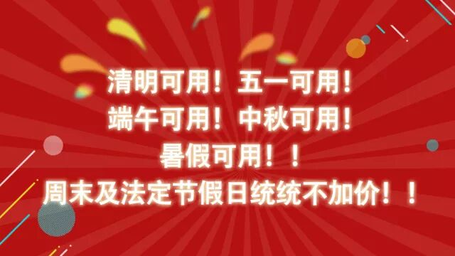 ★活动时间:即日起至2018年9月30日(一周通用,周末及法定节假日不加价!)