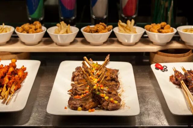 高品质的海鲜、刺身、实力烧烤,都是受吃货青睐的重头戏~种类多不说,还有每天都供应的现点现做档口!周日到周四的门市价都要¥228+15%的服务费,更别说周末的价格啦~