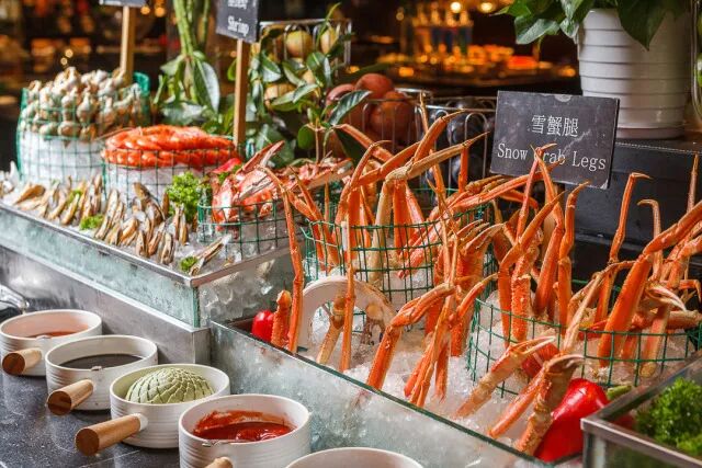 万豪出品的豪华自助晚餐,海鲜笃定是重头戏!种类多不说,也一直深受吃货们喜爱~每天都有不同品种供应!