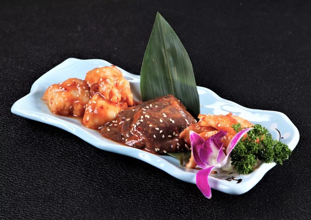 鸡腿肉+牛五花+烤扇贝+蔬菜色拉+什锦拼盘