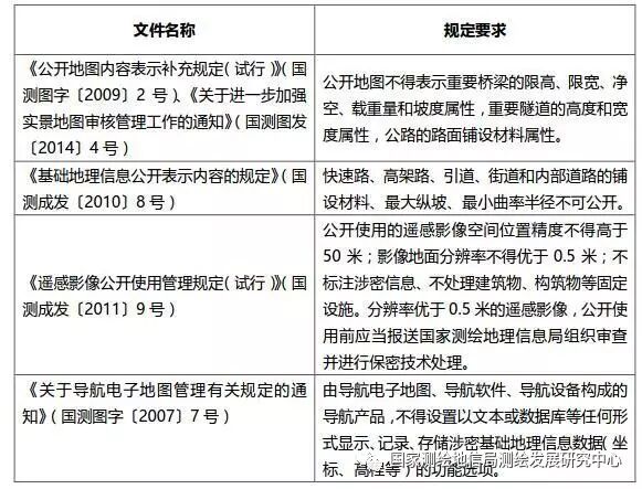 表3 国家关于地图影像地理信息公开使用的有关要求