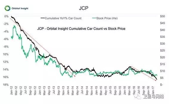 Oribital的停车场数据几乎与J.C.Penney的股票走势图保持一致