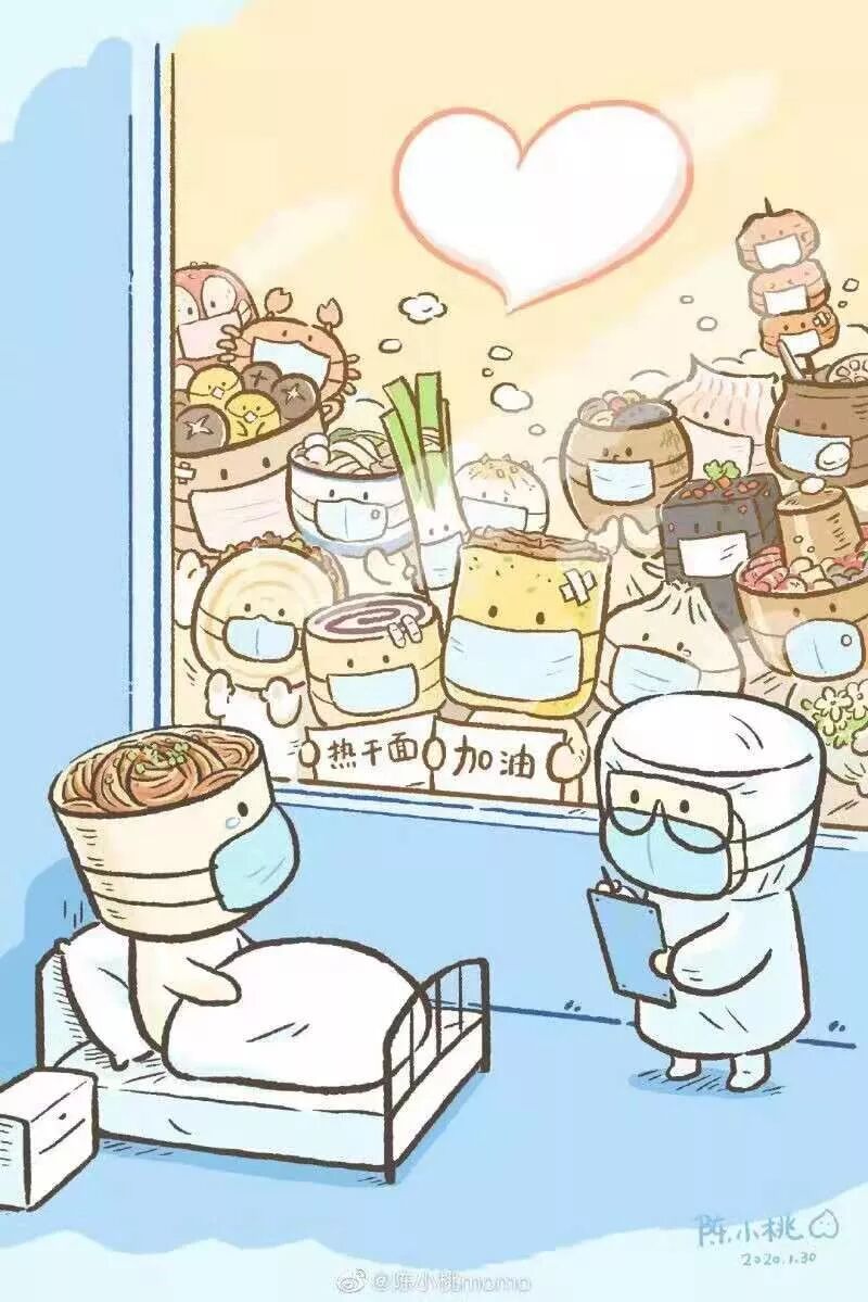 这是一个不平凡的2020,所有一线工作奔赴战场,或救死扶伤,或开天辟地。不忘初心,牢记使命,为感冒的祖国开出自己的一剂良方。最美逆行者们,你们辛苦啦!在你们的努力下,武汉一定会好起来的,不见硝烟的战争,民众不计报酬,一线人员不计生死,在灾难面前,我们同舟共济,必将战胜疫情,“烩面”没有忘记“热干面”,祖国加油!武汉加油!
