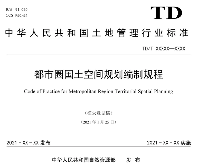 《都市圈国土空间规划编制规程》征求意见稿发布。日前,自然资源部正在对《都市圈国土空间规划编制规程》征求意见,该行业标准规定了都市圈规划的定位、任务、适用范围、编制原则、空间划定、主要内容、成果要求、编制管理程序等,适用于全国范围内各都市圈的国土空间规划编制。如对行业标准有意见,可在自然资源标准化信息服务平台在线填写反馈意见,征求意见截止至2021年2月27日。(原文链接)