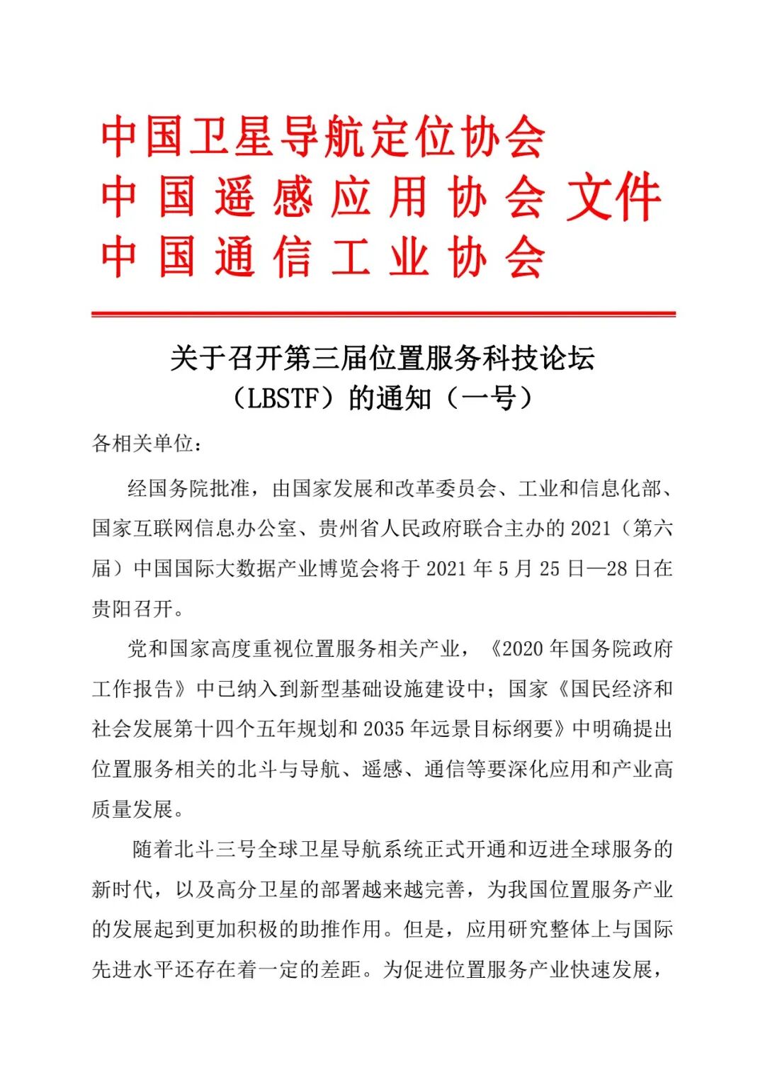 会议通知丨关于召开第三届位置服务科技论坛 (LBSTF)的通知(一号)