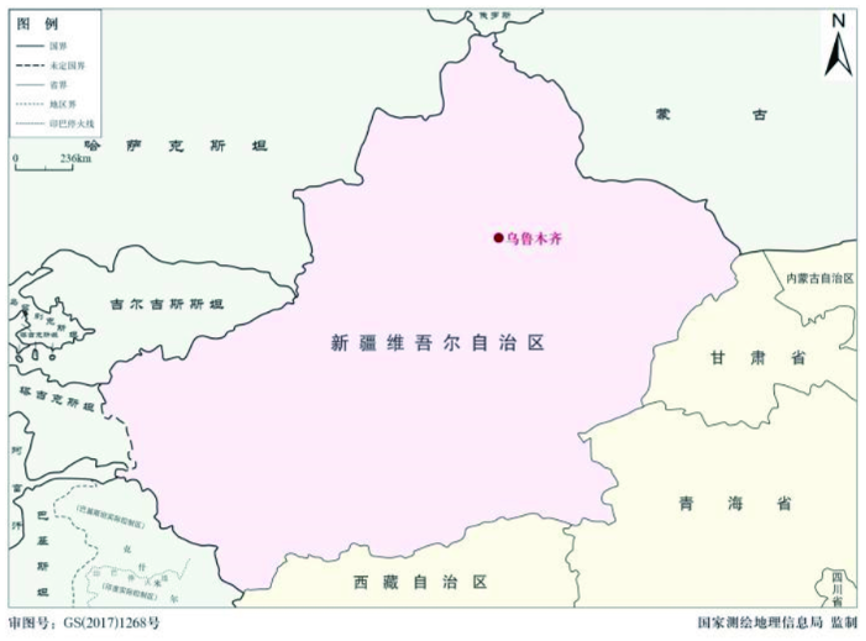 需要特别注意的是,新疆维吾尔自治区地图涉及到中哈边界的萨吾尔山处界段、中吉边界的天山南脉界段和中塔边界乌孜别里山口以南界段为未定国界等易错绘国界线段,这几处国界界段在绘制时极易出错,应高度重视。后文会逐一图解相关国界线的具体绘制问题。