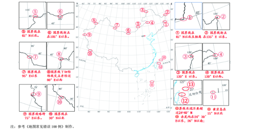 图25 国界线与经纬线关系典型错误样例
