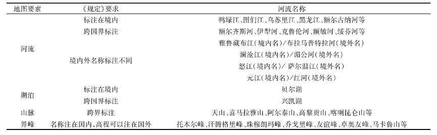 中国陆上国界有多处是以河流、湖泊、山脉分水岭等为界,其地名标注作为地图要素的补充说明更具敏感意味,不能出任何差错。