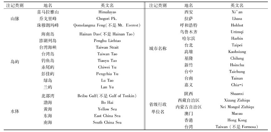 (3)中国周边公海使用英语拼写法;