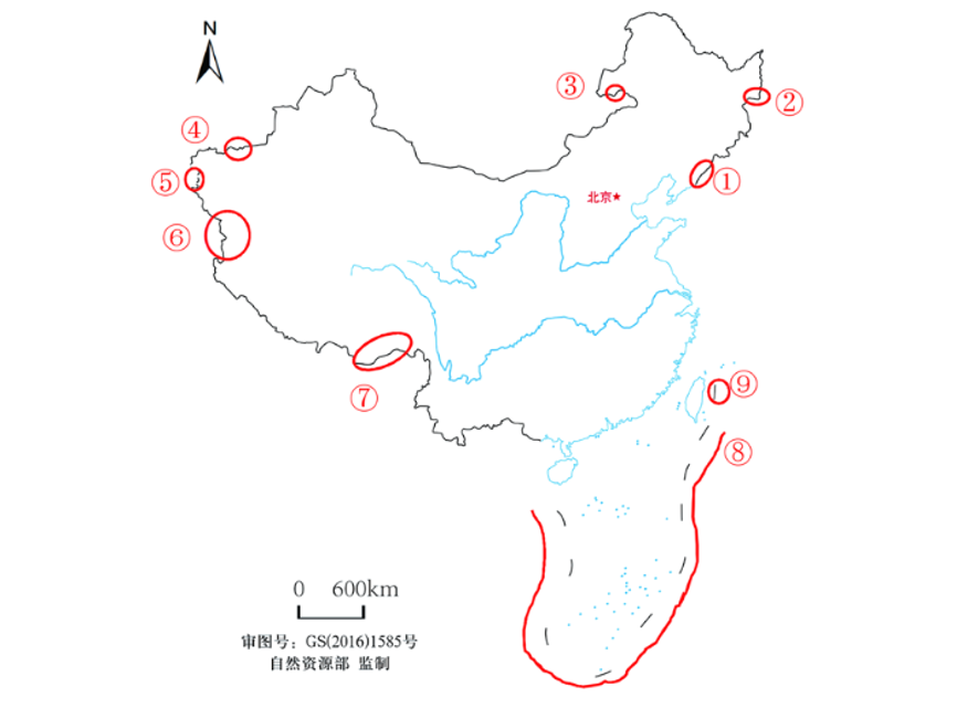 (5)比例尺≤1:1亿的中国示意性地图,可不表示钓鱼岛和赤尾屿等岛屿。