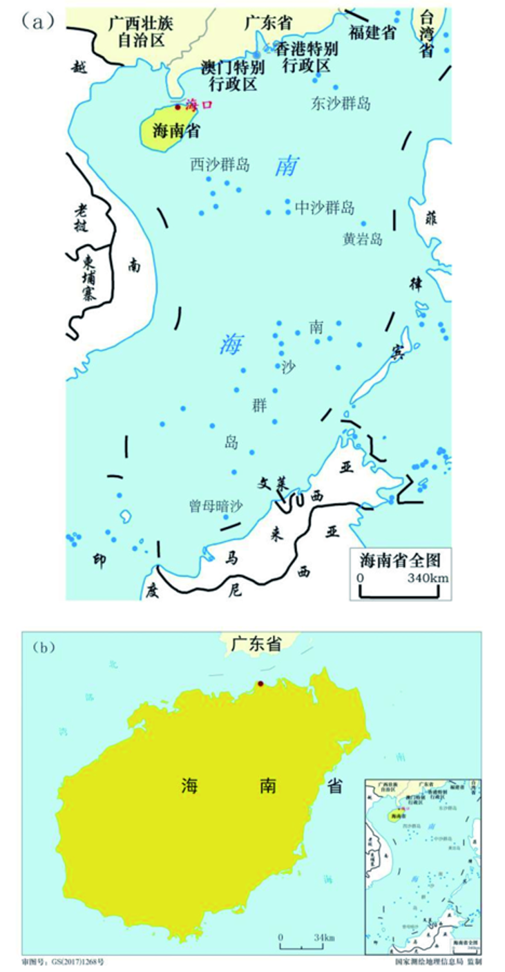2012年,中国国务院批准设立海南省三沙市,行政上管辖西沙群岛、中沙群岛、南沙群岛等岛礁及其海域。所以从行政区划上,南海诸岛隶属于海南省。由此《规定》指出,海南省的图幅范围必须包括南海诸岛,南海诸岛既可以包括在海南省全图内[图4(a)],也可以作附图表示[图4(b)]。