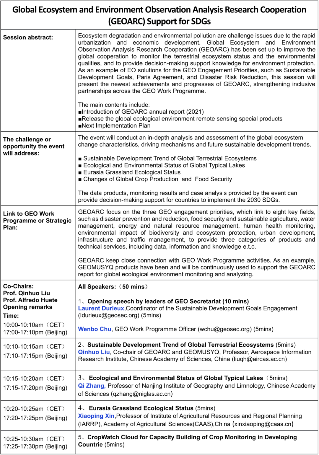 Co-Chair : Prof. Qinhuo Liu and Prof. Alfredo Huete