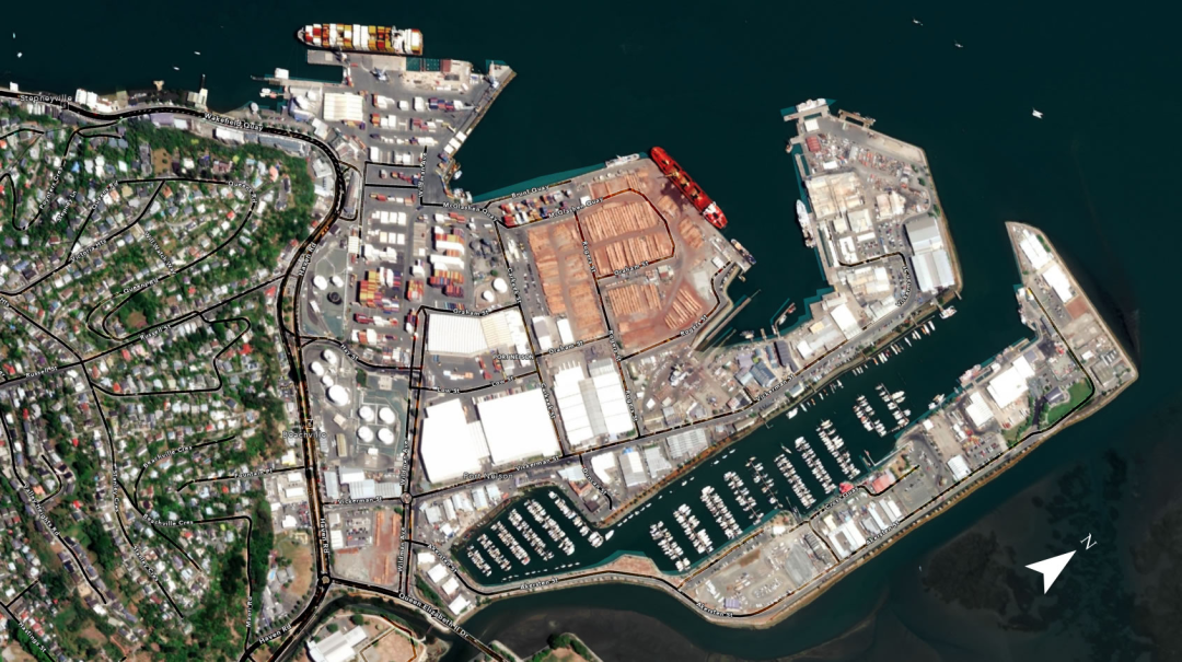 我们再放大一下,进入到了纳尔逊港口,另外为了方便排版,调整下方向。那么这个时候更是要添加一个指北针。