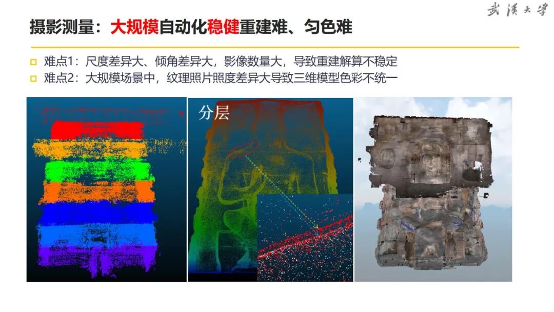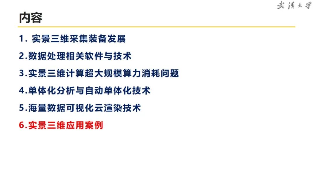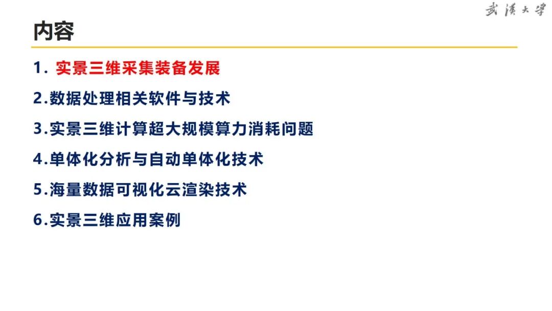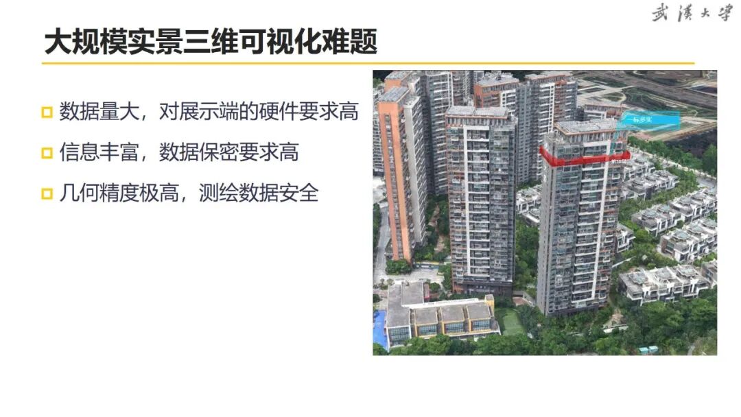 报告亮点:本次报告介绍了利用倾斜摄影、激光点云等实景三维数据采集设备,指出多源融合、空地融合的数据采集是未来发展趋势,提出了实景三维数据处理的各种技术难点,介绍了模型重建、多区域联合空三、大范围跨瓦块整体调色等解决方案,此外还介绍了实景三维数据在无人驾驶、网上博物馆、数字孪生平台等方面的应用。