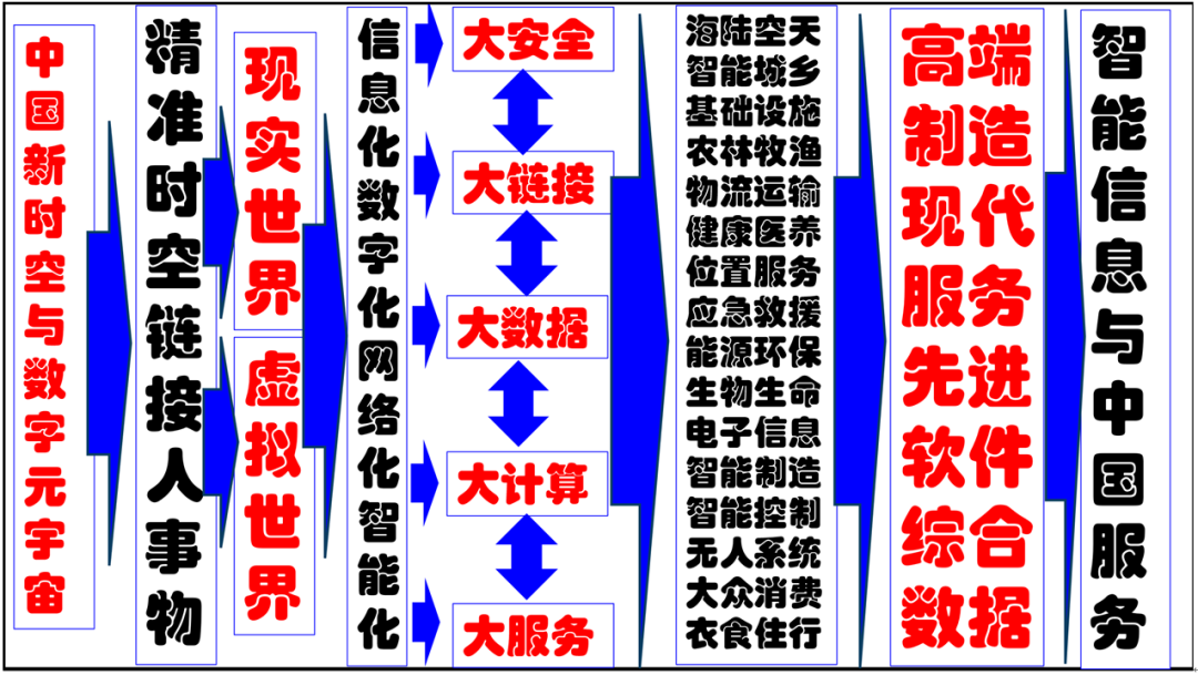 工业时代经历机械化、电气化、电子化三大革命,现在所谓的第四次工业革命,实质上已经步入信息时代,实现数字化转型、网络化协同和智能化升级,利用战略性科技力量的核心引领指导作用,实现泛在实时、开放融合、绿色共享、精准施策的移动无线和服务无限革命,实现中国(北斗)新时空与数字元宇宙的虚实互补的智能化自动化大千世界。这个世界是平的,要逐步消除数据孤岛、数字鸿沟、网信风险,通过城乡一体化融合发展,消除城乡差别、贫富差异、阶层差距,走共同富裕之路,走强国复兴之路,走利益共同体的整体性社会革命之路。