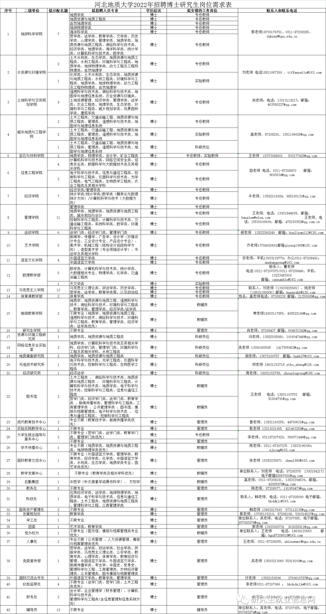 招聘启事 | 河北地质大学 2022年公开招聘博士毕业生公告