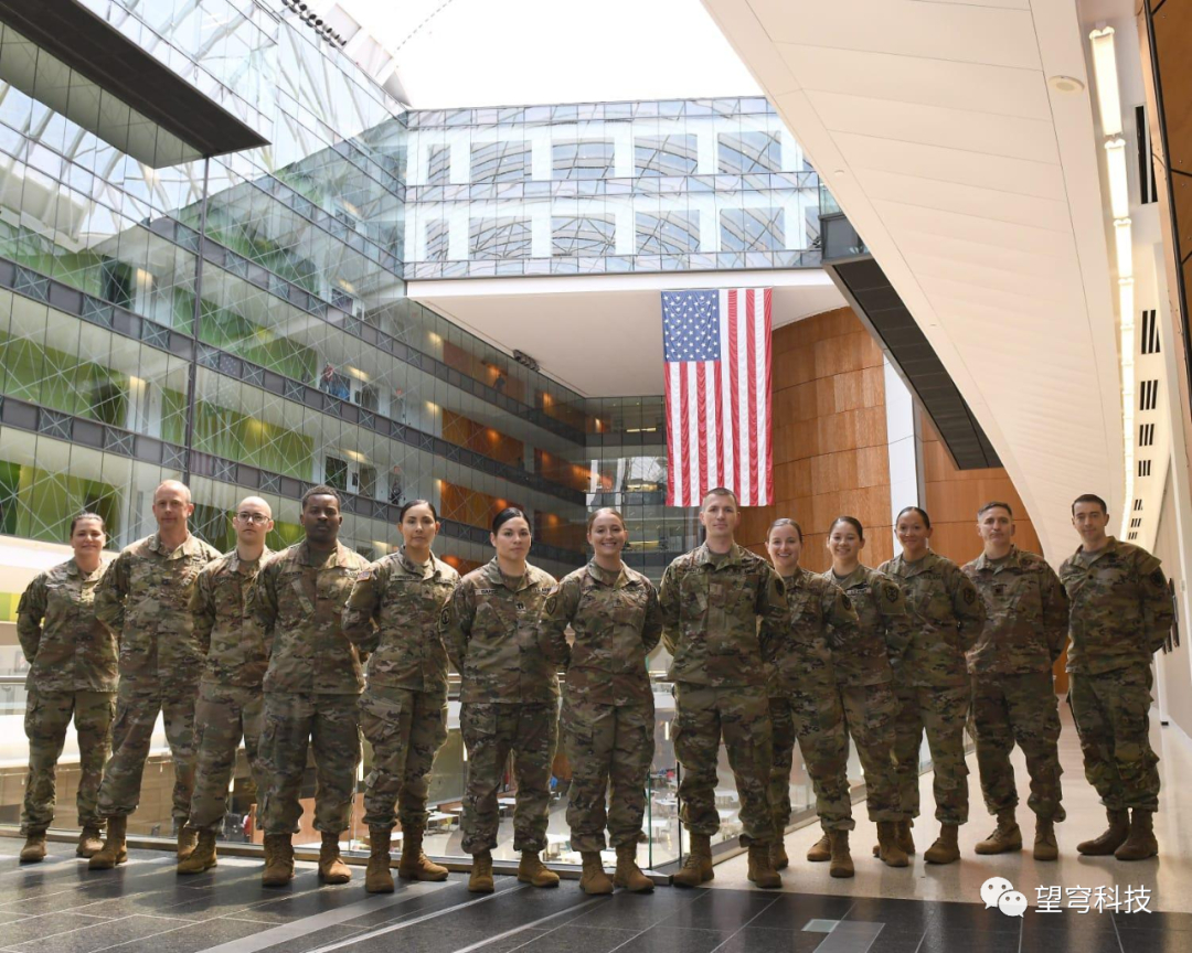 陆军杰出的地理空间情报分析师和工程师在NGA总部内合影