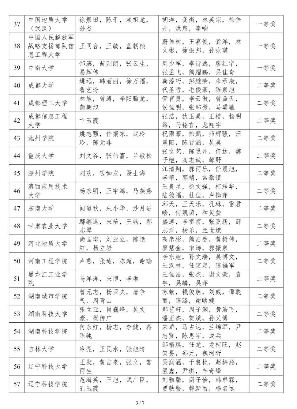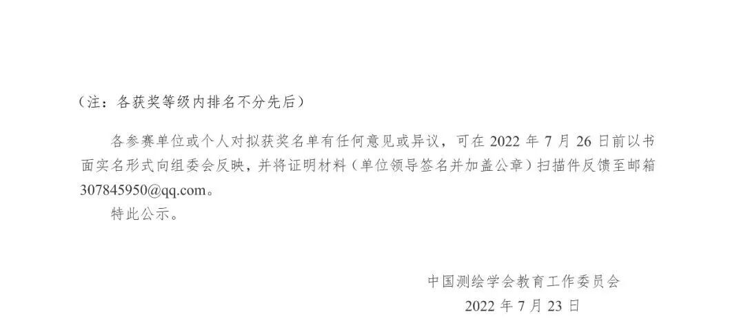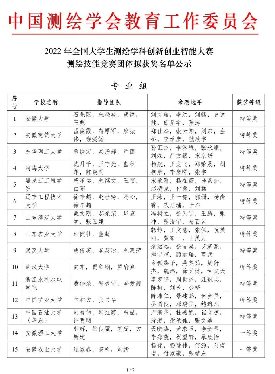 2022年全国大学生测绘学科创新创业智能大赛测绘技能团体竞赛拟获奖名单公示