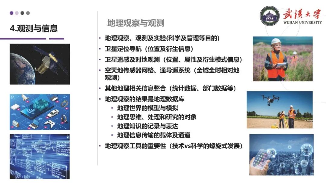 对于地理学来讲,为了开展地理观测,人们发展了卫星定位导航系统对地面的任何一个点做实时的定位技术,还可以给卫星装上照相机以及其他传感器,对地面进行观测、拍照,加上无人机、地面传感器,一起形成了空天地立体的传感器网络。除此之外,还有很多通过统计等部门人为收集形成的数据库。