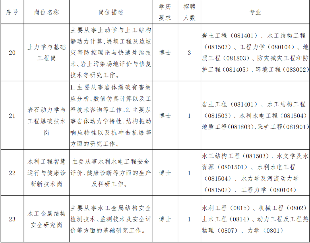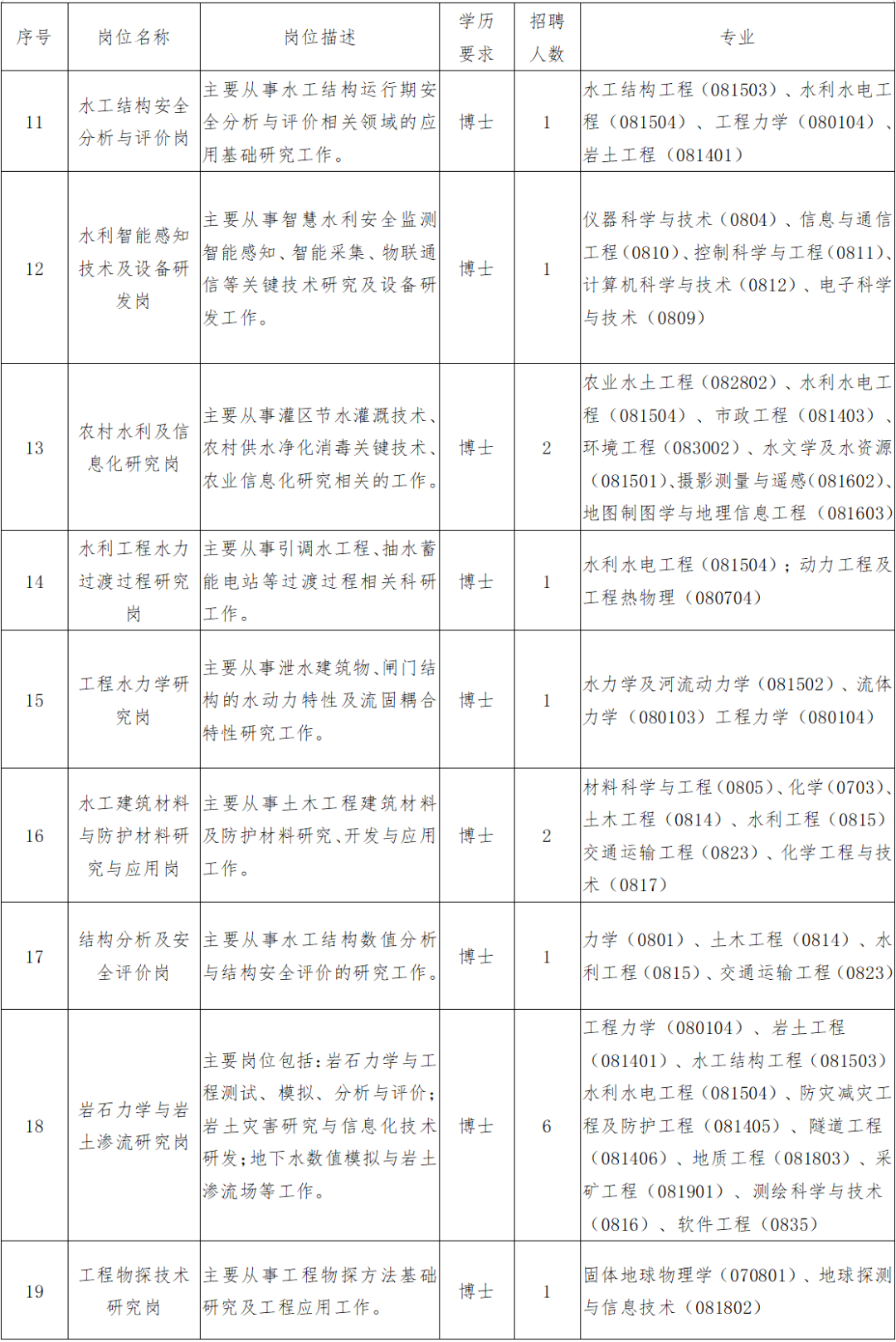 根据事业单位公开招聘有关规定,结合单位发展需要,长江水利委员会长江科学院(以下简称长科院)拟赴部分高等院校,面向2023年度高校应届毕业生开展校园招聘,本次公告拟招聘岗位全部为博士岗位,共计39名。