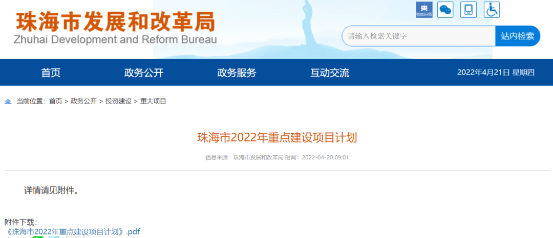 不久前,珠海发改委发布了《珠海市2022年重点建设项目计划》,2022年珠海续建、开建项目统统曝光。