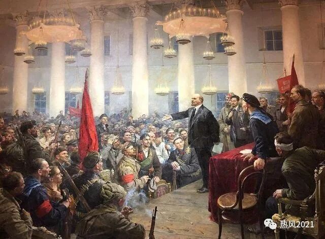 俄国革命,跟中国革命同理:1917年十月革命胜利前后,物质文化面貌没有也不可能一下子发生巨变,但是先变了上层建筑和意识形态;因此,虽然一个是城市中心、一个是农村中心,其实走的又都是一个路子,在发达的西方国家以外革命的路子。俄国虽然也是帝国主义,但是落后的帝国主义、军事封建帝国主义,所以革命路子跟中国更相像。