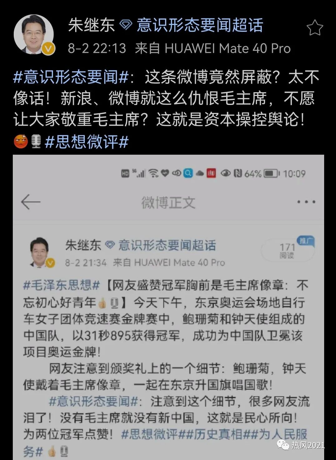 我们注意到,关于奥运健儿与毛主席像章,似乎那些“最主流”的媒体,并没有什么报道;渣浪,更是又恶心了我们一回: