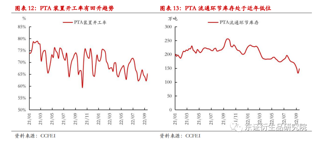 ★经济效益恢复加上新装置投产,国内PX供应量预期修复展望四季度,主要三个方面推导出PX供应恢复的可能性:其一国内外芳烃产品经济效益逐步恢复;其二PX美国与国内价格的套利空间收窄,亚洲至美国的PX出口量将回流中国;其三总计640万吨/年的三套新装置将逐步投产,国内PX供应量将明显上升。在加工费维持高位及原料限制问题解决的情况下,PTA现有装置产量或逐步恢复,叠加四季度行业有总计750万吨/年的三套新装置计划投放,预计PTA供应环比大幅上升。由于终端纺织服装需求受到疫情、全球经济下行以及高位库存三大压制,库存和利润压力直接映射到聚酯生产端。面对现金流的持续亏损,聚酯生产商减产挺价的趋势明显。PTA出口量连续两月大幅下降。宏观风向走弱,海外PTA需求预计进一步下降,中短期依靠出口放量消化新增PTA产能的可行性较低。聚酯产业链“上热下冷”的局面在四季度或有转变,PTA价格及利润承压。从成本端看,OPEC+减产导致原油波动,短期对PTA价格中枢形成支撑。从利润端看,当下PX及PTA的盈利都是靠挤占了下游的利润而实现的。纺服需求冷清以及自身库存高位的情况下,聚酯企业减产挺价的可能性较大。随着PX及PTA的扩产,利润会一定程度回哺下游。然而,供需预期在深贴水的期价上反映充分,短期内估值难以继续下行,单边行情需跟踪原油价格走势,中期谨慎在震荡行情的上边缘局部空单。原油价格大幅波动,PX/PTA投产不及预期,聚酯终端提负加速。