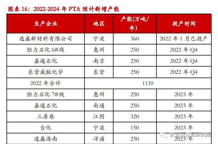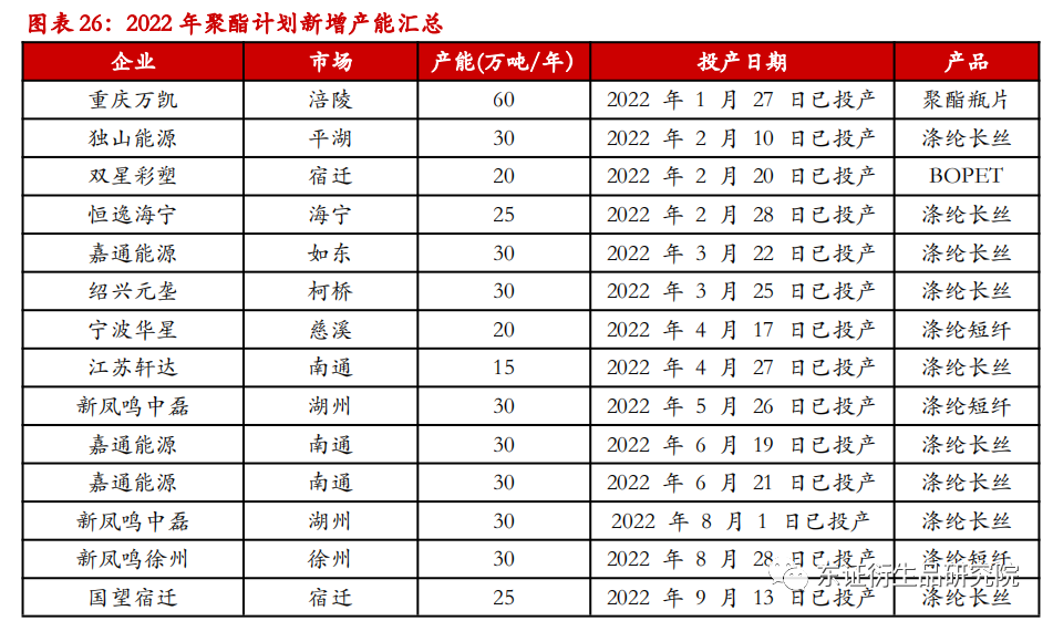 新产能投放背景下,高加工费可持续性存疑。由于PTA供应减量,而“金九银十”下聚酯刚需环比上升,三季度PTA持续去库,预估8—9月市场累计去库54万吨。PTA加工费在9月当中持续修复,总体保持770-1100元/吨区间运行,达到4年以来的高位。然而,2022年PTA计划新增产能达到1650万吨/年,截止前三季度已投产的装置仅360万吨/年,下半年还有750万吨/年的投产计划,占比达到67.57%。在确定的扩产周期下,若下游需求乏力,PTA生产商的高位加工费将难以持续。