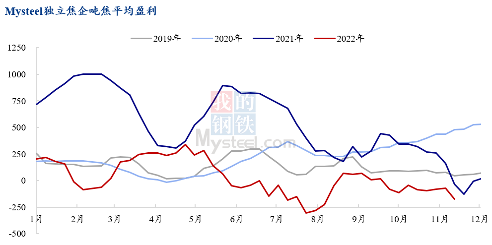 对于11月以来的降价,其核心逻辑在于成材市场的负反馈,钢厂在亏损下做出的转移成本压力的需要,当然期间钢厂做出的减产动作也给焦炭的降价提供了数据支撑。随着原燃料的降价,加上11月中旬以来钢价小幅反弹,两者叠加下钢厂的亏损情况得到改善,市场负反馈的风险不断减弱,这也意味着焦炭降价的核心推力在不断减小,所以焦企才有了博弈提涨的空间。