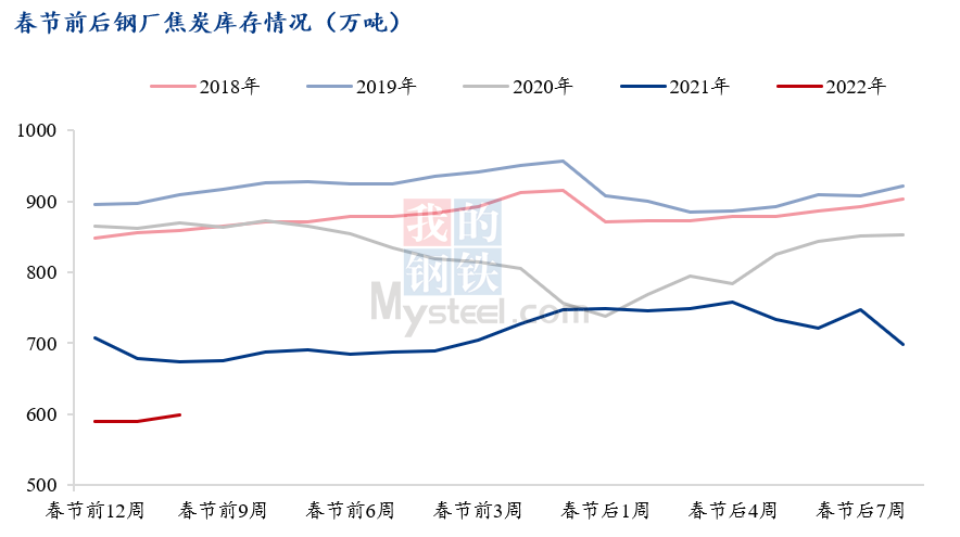 其次从库存角度来看,焦炭在去库状态下,钢厂的厂内焦炭已经达到了一个极低位置,上周Mysteel调研钢厂焦炭库存 599.42万吨,较上周增9.17万吨,同比减少78.4万吨。虽说钢厂今年以来由于利润问题一直采取低库存策略,很多情况下的钢厂降库属于主动行为,但是当前已经处于钢厂冬储补库时间节点,钢厂需要考虑冬储问题。很明显今年的钢厂冬储不会跟往年一样出现大规模补库行为,但考虑到季节性因素和当前的低库存现实,钢厂依旧会有补库行为,尤其是市场情绪发生改变,不再一味看跌焦炭后,钢厂已经开始是否补库增量,预计近期焦炭库存继续往下游转移,同时钢厂补库增量也会继续释放。从库存角度而言,只要钢厂不在主动降库,并且开始有采购需求增量出现,对于焦炭价格就有支撑。