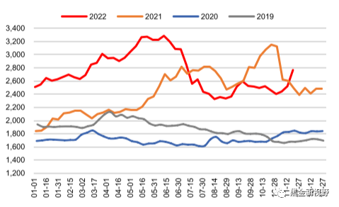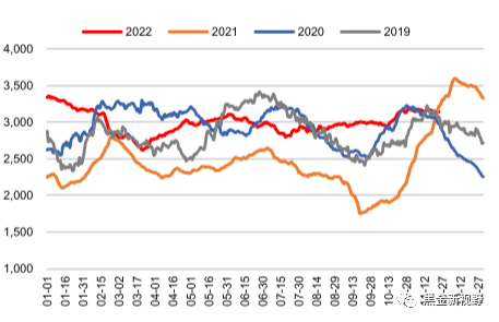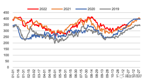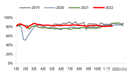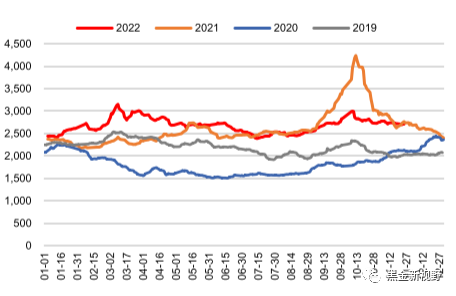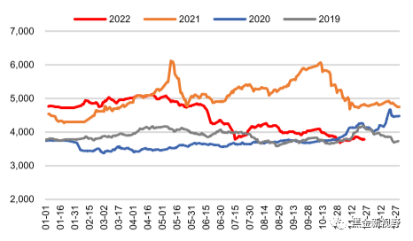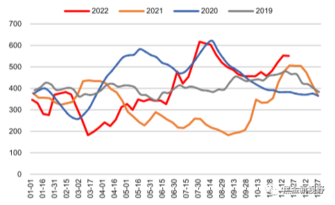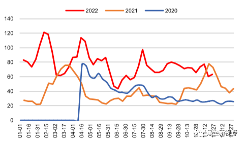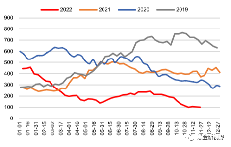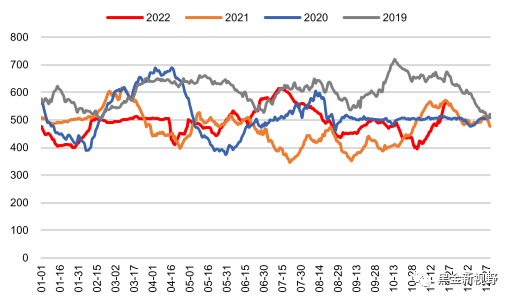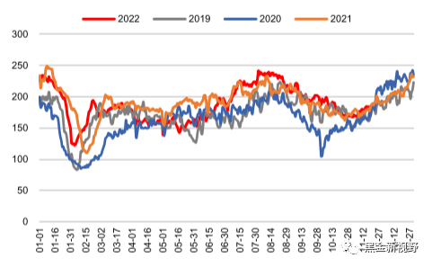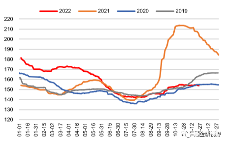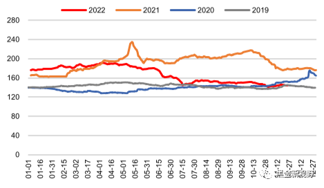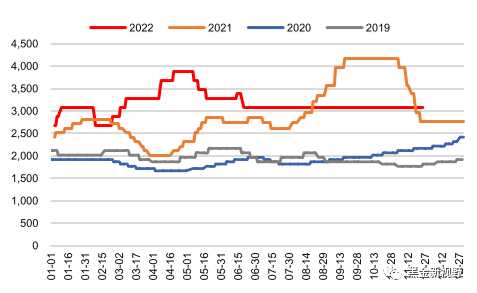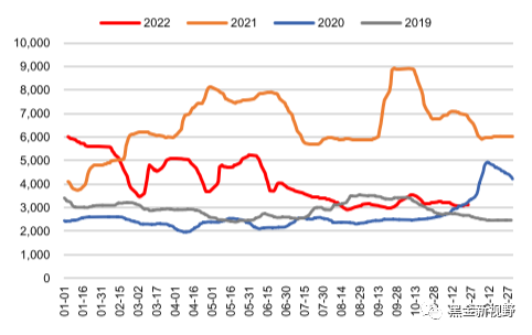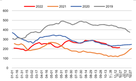 图 21:2019-2022年北方四港货船比(库存与船舶比)情况