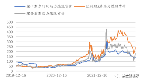 ★截至11月24日,纽卡斯尔NEWC5500大卡动力煤FOB现货价格138.55美元/吨,周环比上升5.1美元/吨;ARA6000大卡动力煤现货价239.95美元/吨,周环比上升41.45美元/吨;理查兹港动力煤FOB现货价179.00美元/吨,周环比上升40.05美元/吨。【注:本价格为国际港口FOB价格,与指数价格有所出入】