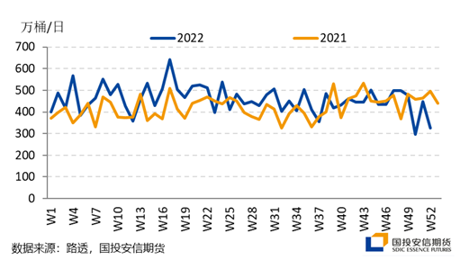 从近一周原油市场的基本面演化来看,供应偏紧进一步得到强化,一方面是12月5日欧盟对俄罗斯海运原油正式实施禁运以来,俄罗斯海运原油装船量近三周均值为357万桶/日,远小于禁运前三周491万桶/日均值水平;另一方面,俄罗斯预计明年将减产5%-7%,普京于27日签署了一项关于就西方对俄罗斯石油实施价格上限采取反制措施的总统令,总统令中指出,如供销合同中以直接或间接方式使用价格上限机制,则禁止向外国法人和自然人供应俄罗斯石油和石油产品,俄罗斯明年一季度较今年四季度产量下降数十万桶已成为市场基准预期。