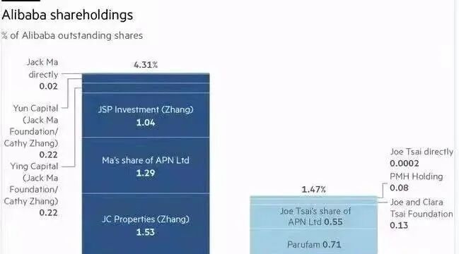 马老师在阿狸的权益主要通过五家离岸公司持有,分别是:JC地产、JSP投资、帕鲁法姆、PMH控股和APN有限公司。