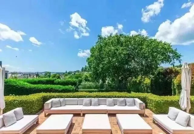 整个房子被高墙环绕,园林偏英式,有玫瑰花园,有果园,还有电影院、健身房、泳池、网球场,和能停7个车位的车库,总之就是各种顶配。