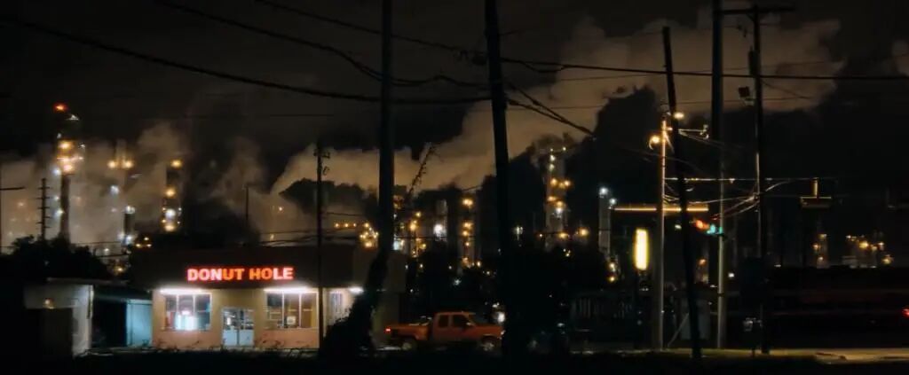 电影里,我们每时每刻都注意到遍地的炼油厂和烟囱。