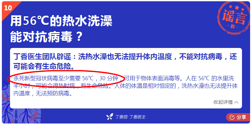 再来看看医学科普权威平台《丁香医生》肺炎辟谣专栏的相关条目截图: