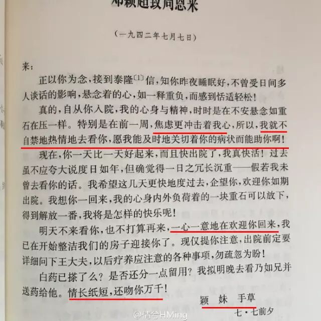 别忙,这封信写于1942年,1942年时周总理里已经是44岁的中年男人了,邓颖超也已经38岁,一对中年夫妻还能如此恩恩爱爱、如胶似漆,佩服!