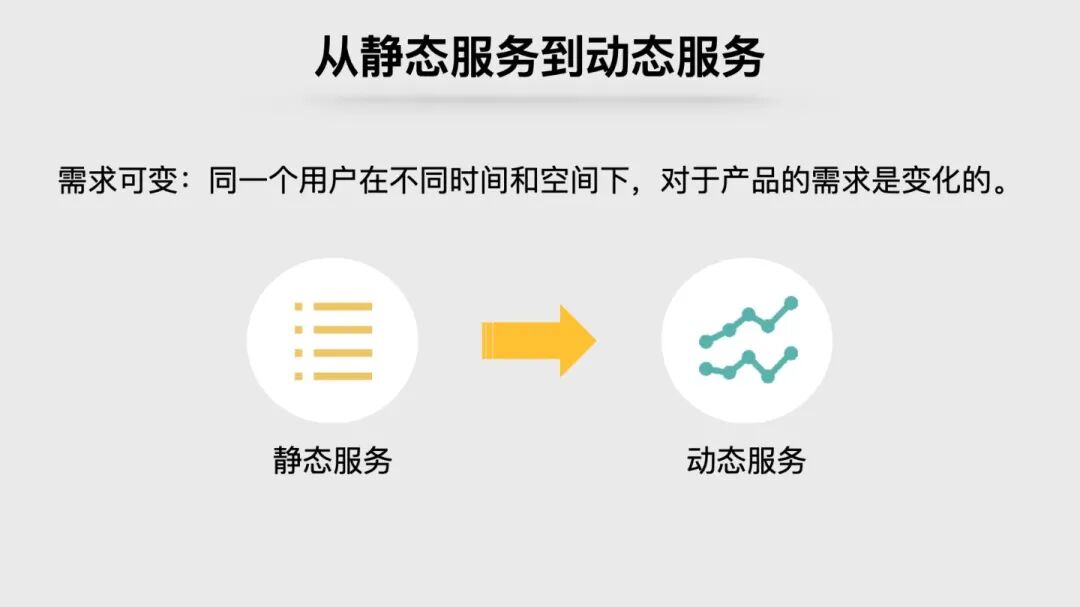 右边这张图是目前服务触达用户的方式:主动,即个性化推荐。用户坐享推荐引擎主动推送给用户可能需要的服务。