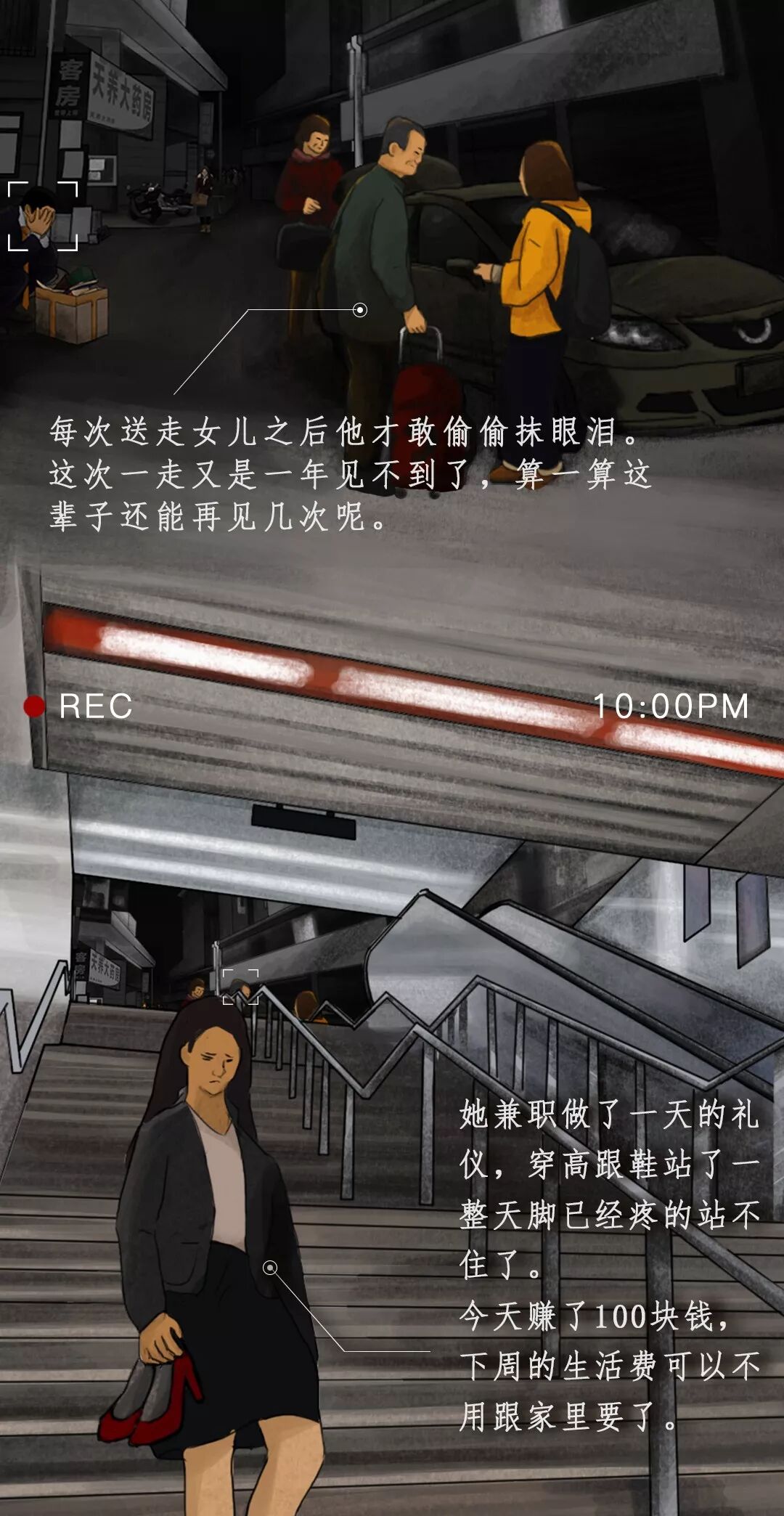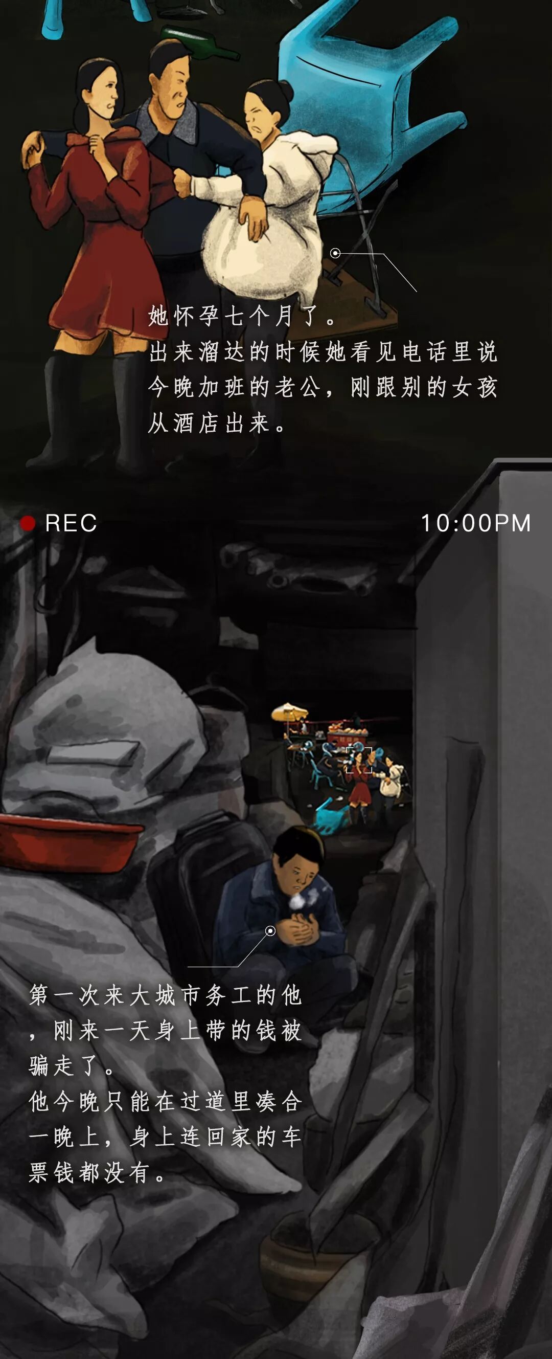 熙熙攘攘的人群里,有寒冷的冬夜站在街头卖烤红薯的人,有背着行李来大城市打工的夫妻,有无家可归的拾荒者,有失恋后街头痛哭的少女,还有加班到凌晨却仍然打不到车回家的你。
