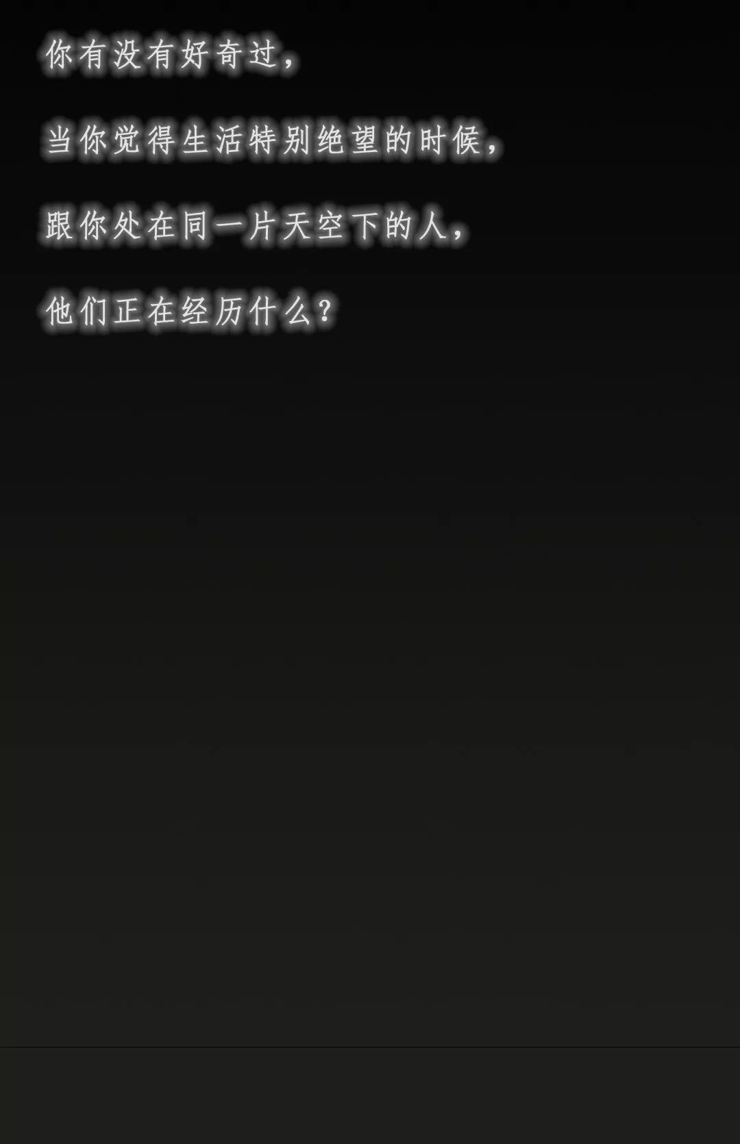 我经常会想,那些和我擦肩而过的人,那些生活在其他角落的人,他们正在经历怎样的人生...