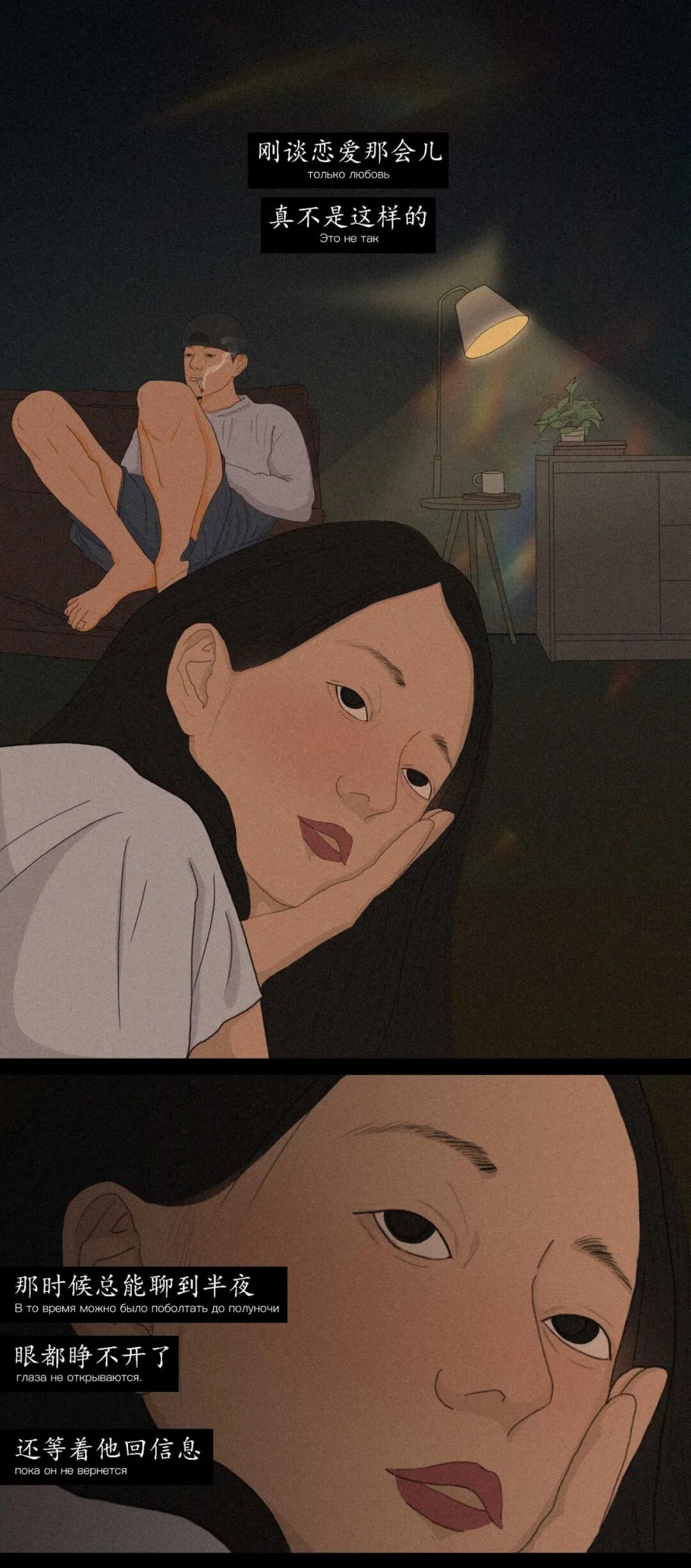 两个人共处一室,各忙各的事情,互不干扰,但会有彼此的小默契维系着这段感情,有各自独立的空间,又因为对方的存在感到踏实和满足,可能这才是两个人最舒服的状态。